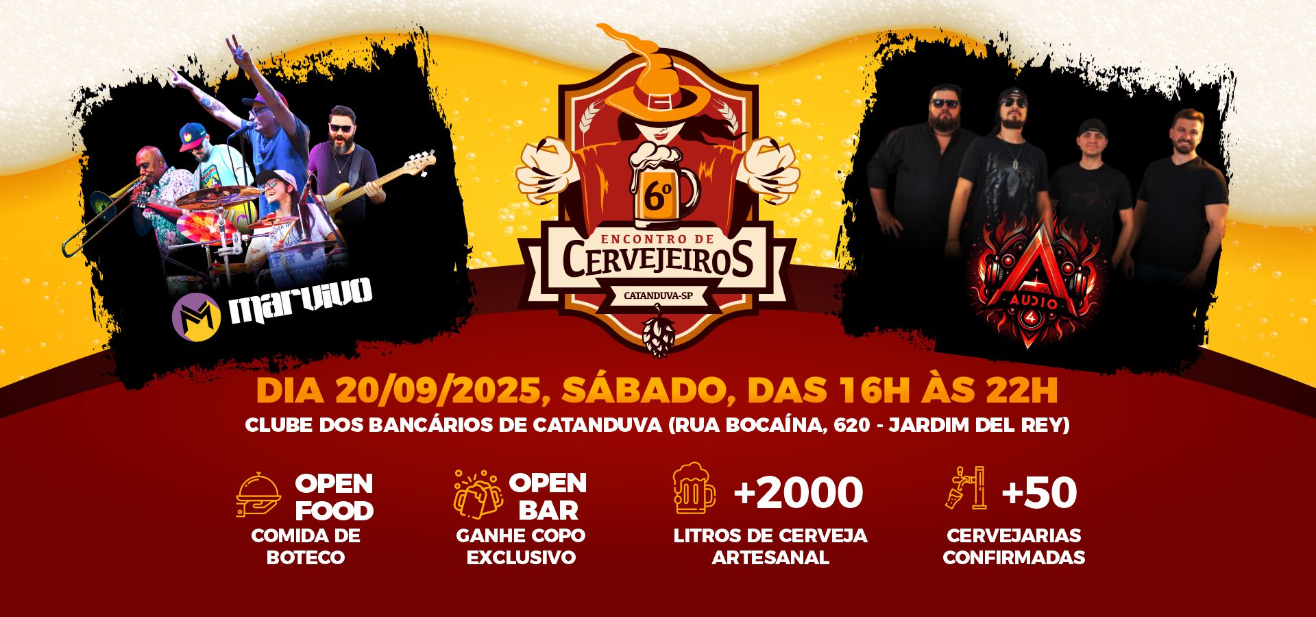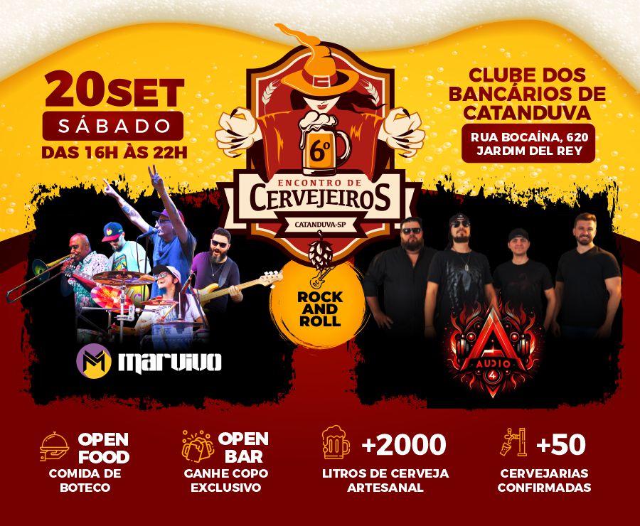 O evento não tem cerveja industrializada, exceto aquelas dos pequenos produtores regionais convidados pela organização. É um evento para fomentar, compartilhar ideias e experiências do mundo cervejeiro artesanal, ao som do bom e velho Rock and Roll, com as Marvivo e Áudio A4, acompanhadas da maravilhosa Comida de Boteco feita pelo Bar do César.